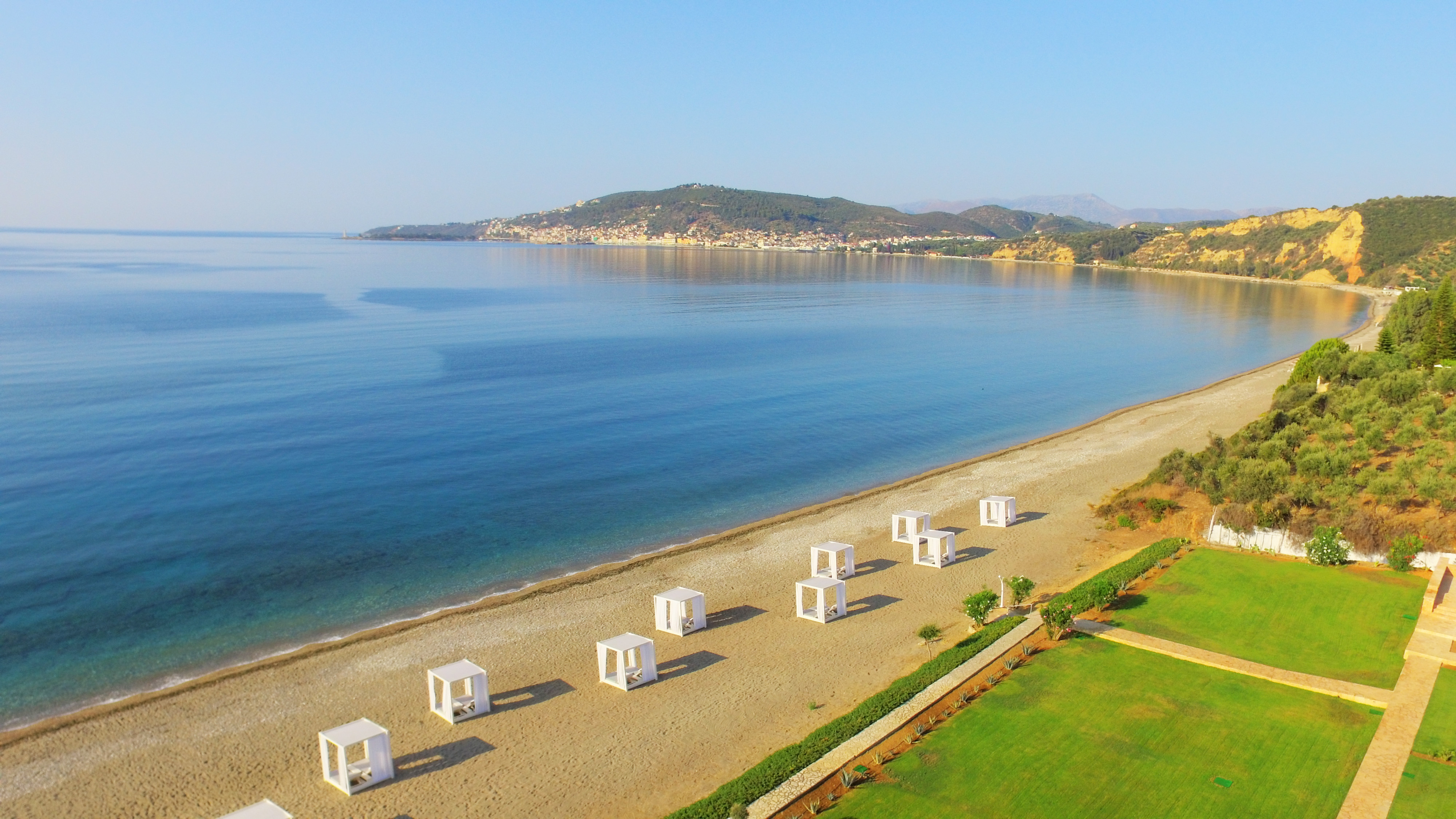 Discover the secret bay! Deep blue waters; private cabanas; soft beach towels;, fresh, crisp fruit; refreshments and fantastic cocktails, attentive individualised service; mere steps away from your Suite and with an expansive view of picturesque Gythio